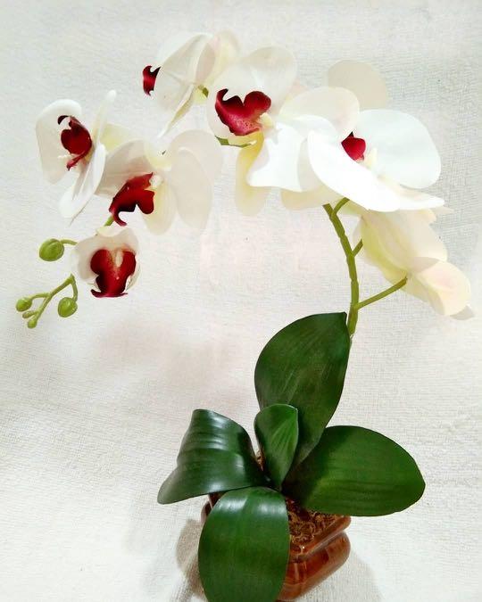 21 Flower Arrangement Phalaenopsis Orchid White Red Small Furniture Home Living Home Decor Artificial Plants Flowers On Carousell